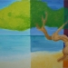 Deze dame is gemaakt van terra cotta en door mij beschilderd met Arubaanse pre-colombiaanse motieven. Ze is te gebruiken als spaarpop. Onder het beeldje is een verwijderbare rubberen dop. Elke spaarpop heeft een uniek patroon.